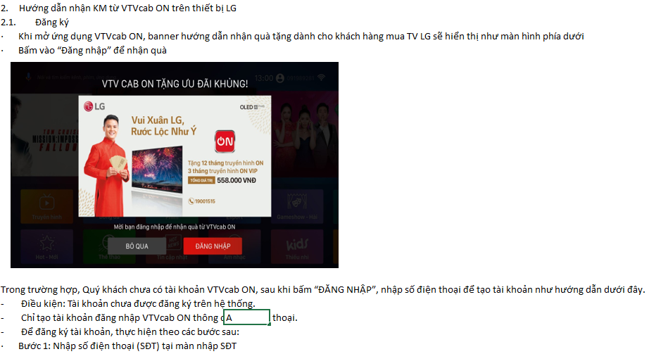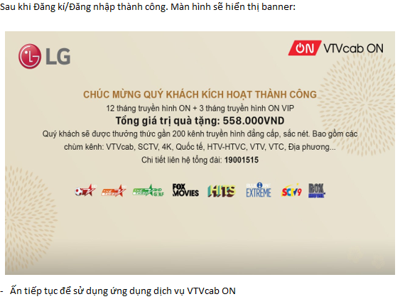 - VTVcab ON – Gói VIP