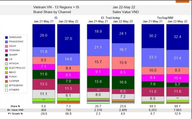 Trong 5 mẫu này có đến 4 mẫu đến từ thương hiệu Panasonic, và Samsung. 2 hãng chiếm đến hơn 50% thị phần tủ lạnh tại thị trường Việt Nam, do mẫu mã sản phẩm đa dạng, trải dài nhiều phân khúc. Panasonic được đánh giá cao ở độ bền và ổn định trong vận hành, trong đó Samsung thiết kế có phần trẻ trung, nhiều tính năng hiện đại và giá thành cũng thấp hơn 1 chút. Đặc biệt cả 2 đều có những mẫu tủ sở hữu tính năng “đông mềm”, theo đánh giá của An Việt và nhiều người tiêu dùng là rất hữu ích. Nên cân nhắc khi chọn lựa ở thời điểm hiện tại.
