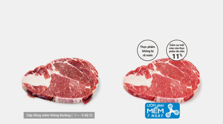 Công nghệ cấp đông mềm trong tủ lạnh giúp bảo quản thực phẩm tươi sống tươi ngon, nguyên vị mà không bị đóng băng. Từ đó, chất dinh dưỡng trong thực phẩm còn giữ nguyên, đảm bảo sức khỏe cho gia đình bạn. Đặc biệt, thực phẩm được để trong ngăn cấp đông mềm chỉ đông bề mặt nên bạn có thể sử dụng ngay mà không cần rã đông khi chế biến.Trong khi đó, nếu bạn bảo quản thực phẩm tươi sống bằng các loại tủ lạnh thông thường không có công nghệ cấp đông mềm thì luồng khí lạnh sẽ được thổi trực tiếp vào thực phẩm làm chúng đóng băng hoàn toàn từ trong ra ngoài, thực phẩm bị đông cứng đến tận lõi, cực kỳ khó cắt. Thậm chí muốn cắt thực phẩm, bạn phải cho chúng vào lò vi sóng để rã đông, ngâm vào nước hoặc để ở bên ngoài điều kiện thường…Nhưng nếu làm như vậy, chất dinh dưỡng và mùi vị ban đầu của thực phẩm sẽ bị mất đi đáng kể.2. Ưu điểm của công nghệ cấp đông mềm