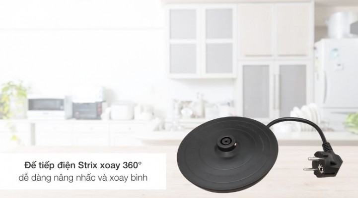 - Đế tiếp điện Strix bền bỉ, tuổi thọ lên đến 10.000 lần nấu, dễ dàng nhấc và đặt bình vào đế, có thể xoay 360°.