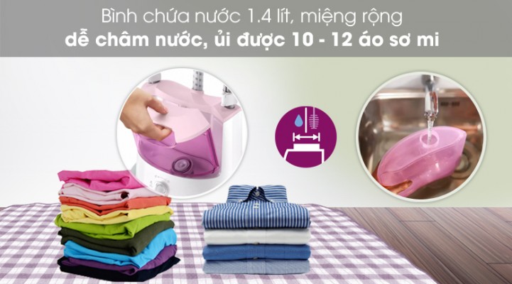 Ủi liên tục không cần châm nước với bình chứa nước dung tích lớn 1.4 lít