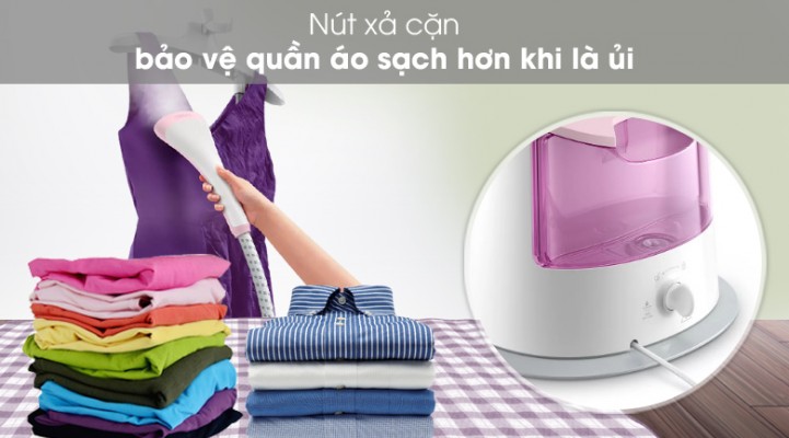 Tích hợp nút xả cặn để làm sạch bình chứa và hệ thống dẫn hơi, đảm bảo hơi nước ra tinh khiết, tránh gây ố vàng trên quần áo