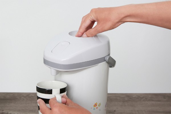 Trên nắp bình còn có khoá bơm tay, giúp hạn chế trẻ con nghịch lấy nước sẽ bị bỏng