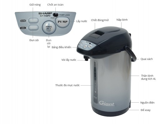 Bình thủy điện Sharp KP-Y40PV 4 lít tiện dụng, giá cả hợp lý, phù hợp với mọi gia đình.