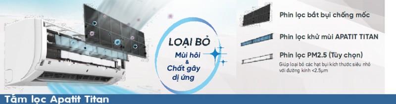 Máy điều hòa Daikin 1 chiều FTF25UV1V được trang bị tấm lọc Apatit Titan có thể vô hiệu hóa vi khuẩn và virus. Mang lại không khí trong lành, sạch sẽ bảo vệ sức khỏe những người thân yêu của Bạn.