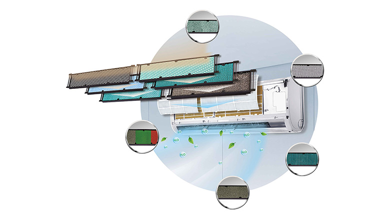 Điều hòa được tích hợp tấm lọc 8 lớp, với nhiều chức năng bảo vệ sức khỏe, ngăn chặn tối ưu các hạt bụi, vi khuẩn, nấm mốc và các tạp chất có hại.
