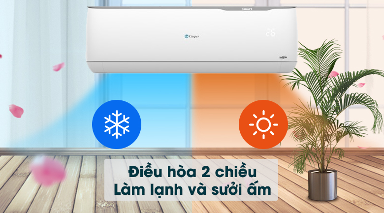 Bên cạnh chức năng làm lạnh khi thời tiết nóng bức, điều hòa còn có thể đổi ngược chiều sưởi ấm vào những ngày lạnh giá. Loại điều hòa 2 chiều này cực kì thích hợp với các vùng khí hậu miền bắc có mùa đông lạnh hoặc vùng núi cao như Đà Lạt.