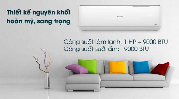Máy có công suất làm lạnh 9000 BTU - 9.000 BTU và công suất sưởi ấm 9.000 BTU thích hợp để sử dụng bên trong những phòng ngủ hay phòng khách nhỏ có diện tích dưới 15 m2.