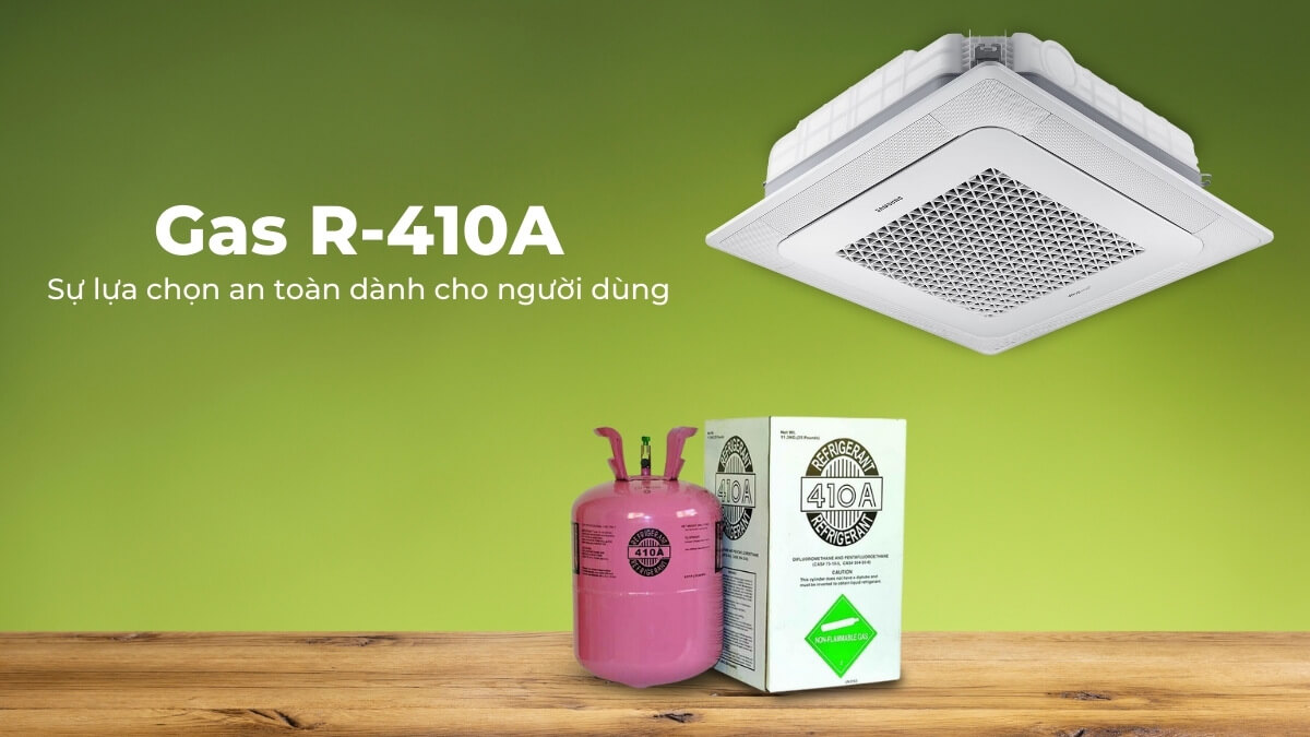 Gas R-410A vốn được biết đến là môi chất làm lạnh có hiệu suất cao hơn so với thế hệ gas cũ. Do đó khi sử dụng gas R-410A, Máy Lạnh Âm Trần Samsung Inverter AC100TN4DKC/EA có thể làm mát nhanh cho toàn bộ căn phòng. Do R-410A có hiệu suất cao nên máy nén không phải vận hành quá nhiều vẫn có thể đáp ứng được nhu cầu, từ đó lượng điện tiêu hao cũng được giảm đi đáng kể. Vậy nên việc sử dụng gas R-410A không chỉ giúp máy lạnh hoạt động với hiệu suất cao mà còn đảm bảo lượng điện năng tiêu thụ ở mức thấp.Samsung lựa chọn gas R-410A cho thiết bị làm mát của mình không chỉ vì hiệu suất mà còn là sự thể hiện trách nhiệm trước các vấn đề liên quan đến môi trường. Cụ thể gas R-410A không chứa các chất gây ảnh hưởng đến tầng Ozon hay hiệu ứng nhà kính. Vì thế Máy Lạnh Âm Trần Samsung Inverter AC100TN4DKC/EA là sản phẩm thân thiện với môi trường, phù hợp với xu hướng tiêu dùng của mọi người hiện nay.