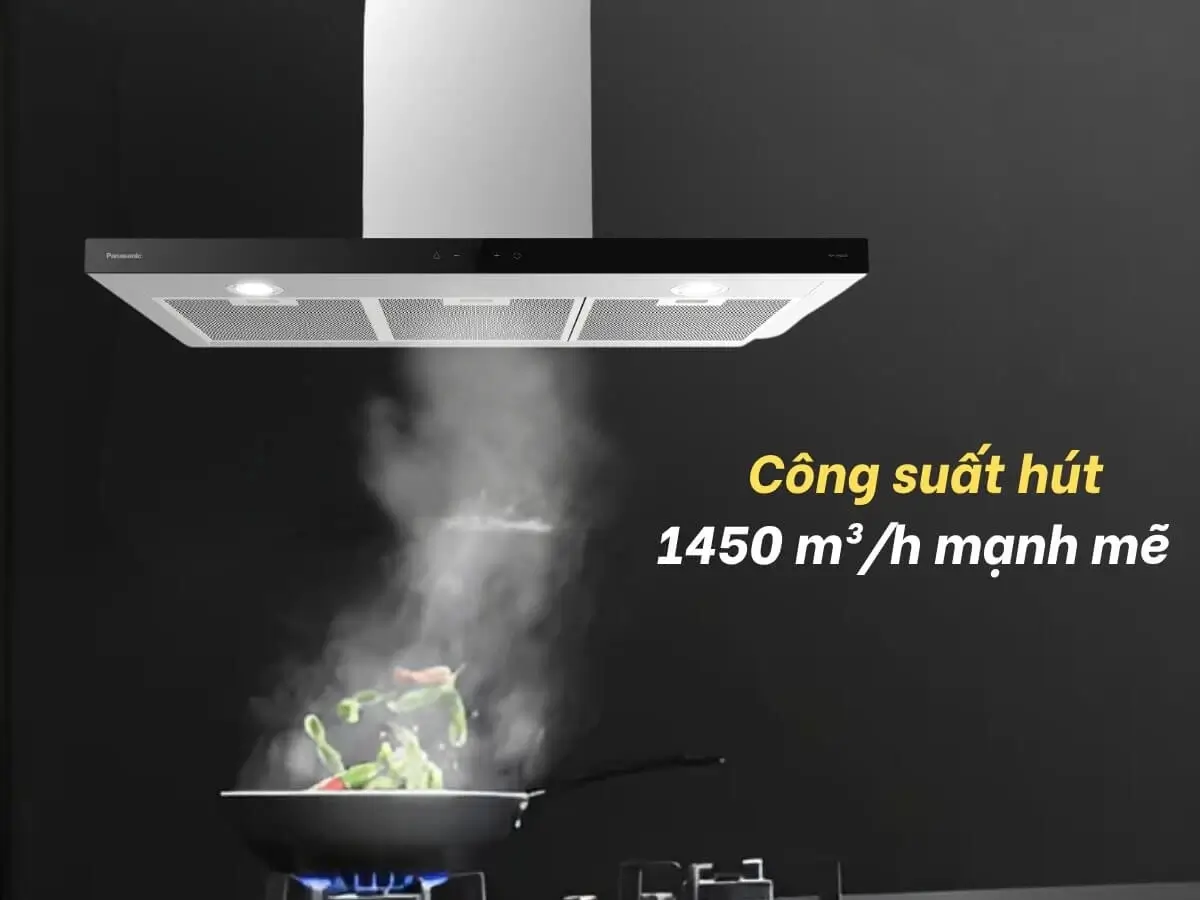 Trang bị động cơ mạnh mẽ, máy hút mùi Panasonic FV-TX9ADSYUE mang đến hiệu suất vượt trội với lưu lượng hút lên tới 1.450 m³/h. Đây là mức công suất lý tưởng cho cả những căn bếp thường xuyên nấu nướng, giúp loại bỏ mùi hôi, khói, hơi nước và dầu mỡ nhanh chóng, giữ cho không gian bếp luôn thông thoáng, dễ chịu.