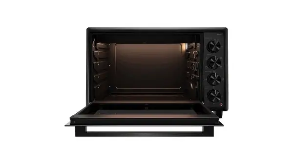 Sản phẩm sở hữu thiết kế gọn gàng với tông màu đen sang trọng, phù hợp với nhiều không gian bếp khác nhau. Kích thước nhỏ gọn giúp tiết kiệm diện tích, dễ dàng bố trí trên kệ bếp hoặc bàn ăn. Vỏ lò bằng thép phủ sơn tĩnh điện chống rỉ sét, tăng độ bền và tính thẩm mỹ. Cửa kính 2 lớp giữ nhiệt tốt, an toàn khi sử dụng.