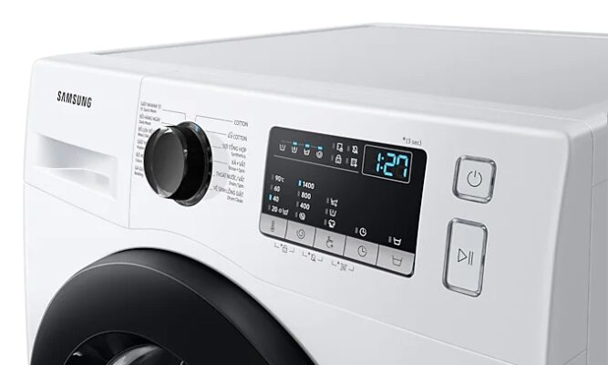 Máy giặt Samsung trang bị bảng điều khiển AI có khả năng tự động ghi nhớ, phân tích, đề xuất chế độ giặt và cài đặt yêu thích dựa trên thói quen sử dụng mà không cần tùy chỉnh mỗi lần giặt. Màn hình hiển thị quy trình giặt dễ hiểu, hướng dẫn thông minh giúp người dùng dễ dàng thao tác sử dụng.
