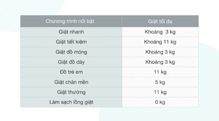 Khối lượng giặt lớn đến 11 kg, thoải mái dùng với gia đình trên 7 thành viên