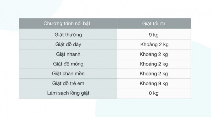 Máy giặt có khối lượng 9 kg, phù hợp cho gia đình có từ 3 - 5 thành viên hoặc ít người hơn nhưng có nhu cầu giặt 1 lần nhiều đồ.