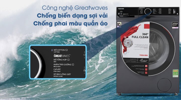 Công nghệ Greatwaves hoạt động hiệu quả trên máy giặt Toshiba TW-BK115G4V(MG) với 3 công nghệ chính là: Flush Waves, Real Inverter và Color care, giúp quần áo không chỉ được giặt sạch tối ưu mà còn hạn chế được tình trạng làm biến dạng sợi vải và phai màu sắc của quần áo sau khi giặt.