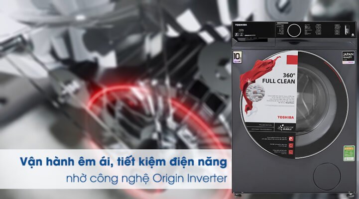 Chiếc máy giặt Toshiba lồng ngang này còn sử dụng công nghệ Origin Inverter, giúp máy được vận hành êm ái mà vẫn đạt được tốc độ quay vắt cao đến tận 1400 vòng/phút và sử dụng điện năng tiết kiệm đến 67%.