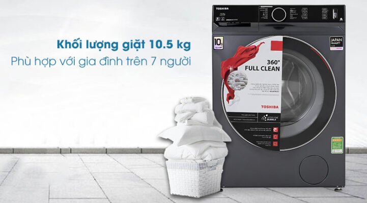 Khối lượng giặt 10.5kg, phù hợp cho gia đình đông người (trên 7 người)