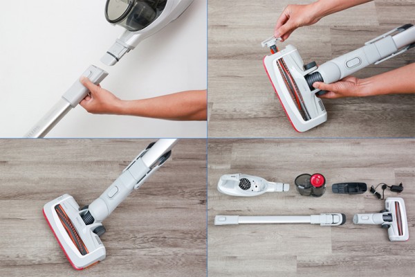 Tháo rời cán dài sử dụng cầm tay vệ sinh nhẹ nhàng trên ghế sopha, bàn bếp, giường ngủ, bậc cầu thang,...