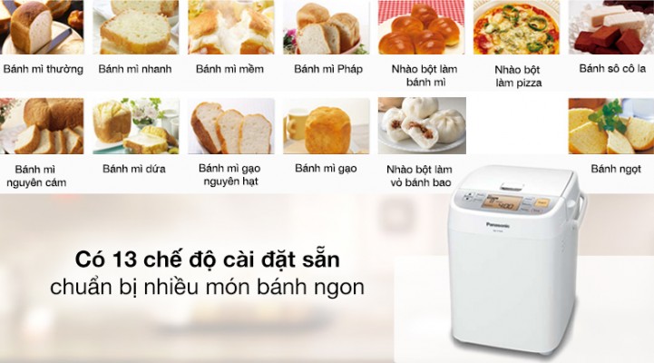 Máy sở hữu 13 chế độ cài đặt sẵn giúp bạn chuẩn bị đa dạng các loại bánh hấp dẫn, thơm ngon