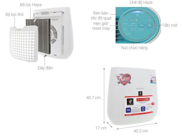 Diện tích hoạt động, Giải pháp làm sạch không khí, Loại máy, Sharp, Từ 35m2-50m2
