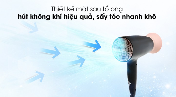 Mặt sau của máy sấy tóc thiết kế dạng tổ ong giúp hút khí hiệu quả