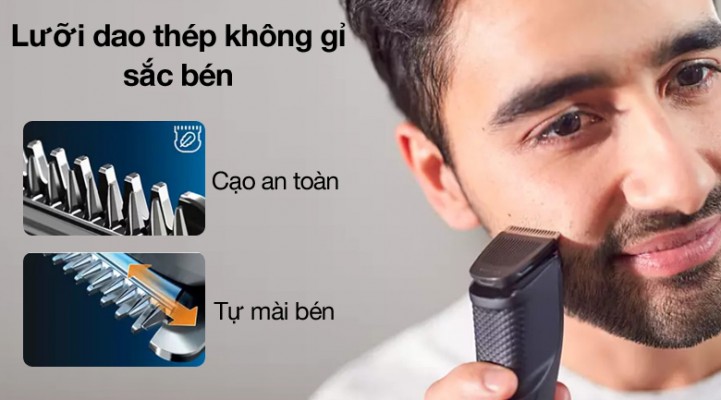 Máy tạo kiểu râu Philips BT1214/15 cắt và tạo kiểu râu an toàn, chuẩn xác nhờ lưỡi cắt bằng thép không gỉ sắc bén, tiếp xúc êm ái trên bề mặt da