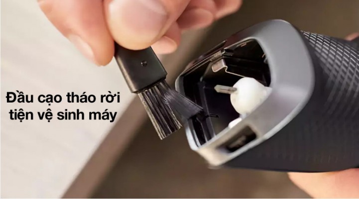Tháo rời đầu cạo và bạn có thể vệ sinh nó dễ dàng với chổi quét đi kèm