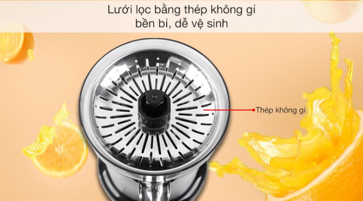 Phần hạt cam sẽ được giữ lại hoàn toàn, cho bạn ly nước ép trong và sánh mịn. Bên cạnh đó, nhờ được làm từ chất liệu thép không gỉ, nên lưới lọc rất