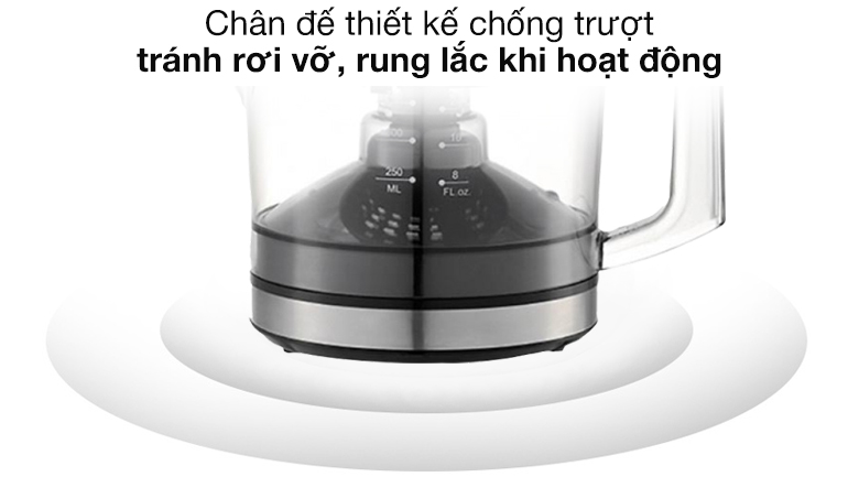 Bình chứa 0.75 lít làm từ chất liệu nhựa AS có độ cứng cao, kháng vỡ và giúp máy nhẹ hơn, độ linh động cao để sử dụng tại nhà, cửa hàng, trong các chuyến dã ngoại,... Ngoài ra, bình chứa trong suốt có thang đo giúp người dùng