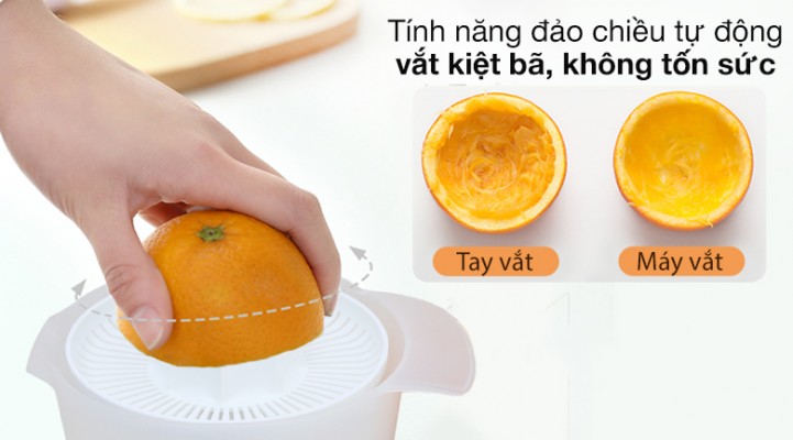 giúp vắt kiệt từng tép cam và cho lượng nước ép nhiều hơn so với việc vắt bằng tay.