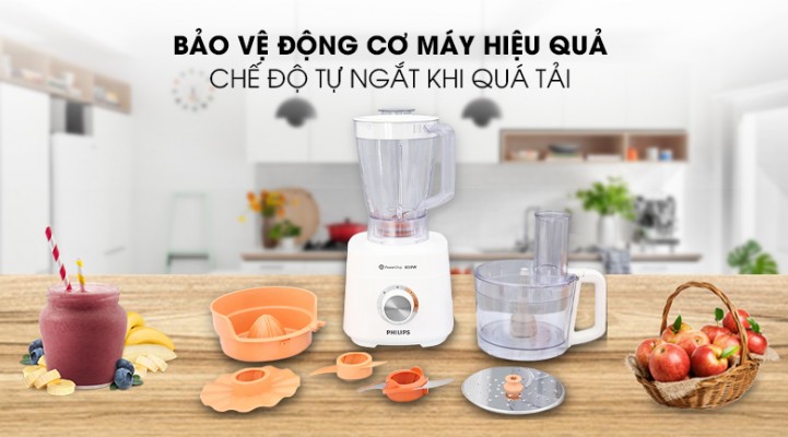 Máy xay sinh tố Philips còn được trang bị tính năng tự ngắt khi quá tải, an toàn sử dụng, hạn chế chập cháy điện