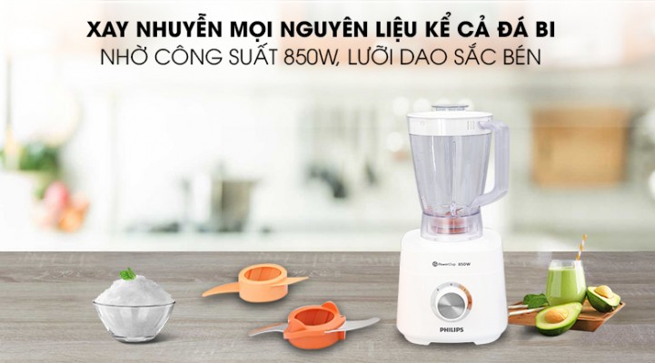 Xay nhuyễn thực phẩm dễ dàng với công suất 850W và nhiều phụ kiện đi kèm