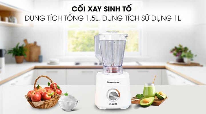 Cối xay sinh tố dung tích sử dụng 1L có thể xay được tới nhiều ly sinh tố trái cây cùng một lúc
