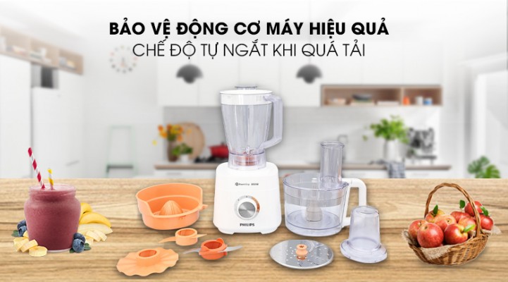 Máy xay sinh tố Philips còn được trang bị tính năng tự ngắt khi quá tải, an toàn sử dụng, hạn chế chập cháy điện