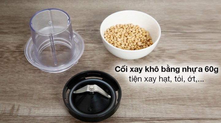 - Không xay quá nhiều thực phẩm trong 1 lần dùng, chỉ nên chứa khoảng 2/3 dung tích cối để nguyên liệu được đảo đều và chống tràn khi xay.
