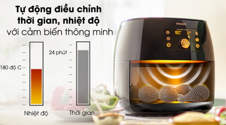 Tự chỉnh nhiệt độ, thời gian qua công nghệ cảm biến thông minh, phù hợp với những người bận rộn hoặc chưa có kinh nghiệm nấu ăn
