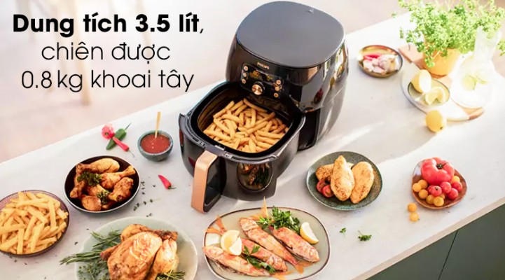 Dung tích 3.5 lít, chế biến được cùng lúc 0,8 kg khoai tây hoặc gà nguyên con dưới 1 kg
