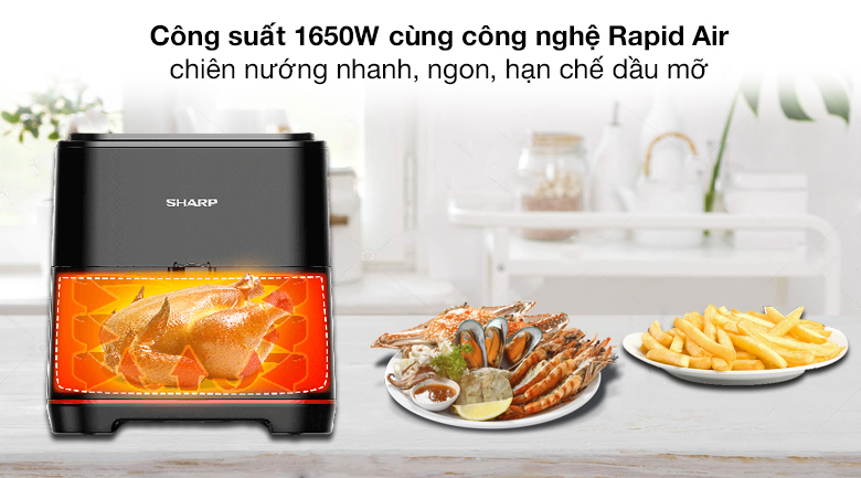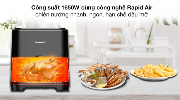 Nồi chiên không dầu Sharp KF-AF70EV-BK 5.5 lít thiết kế hiện đại, chiên nướng ngon không cần dùng dầu ăn, hạn chế dầu mỡ, có 10 chương trình cài đặt sẵn nấu nướng dễ dàng, xứng đáng có mặt trong gia đình bạn.
