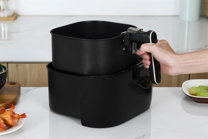 - Thiết kế viewdoor mặt trước trong suốt và đèn chiếu sáng bên trong, thuận tiện quan sát thực phẩm trong quá trình chiên nướng.