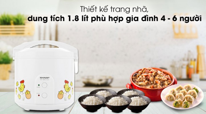 Nồi cơm điện nắp gài Sharp 1.8 lít KS- 183TJV-CH thương hiệu Sharp - Nhật Bản thiết kế nhỏ gọn, nấu cơm nhanh, thích hợp dùng cho gia đình.
