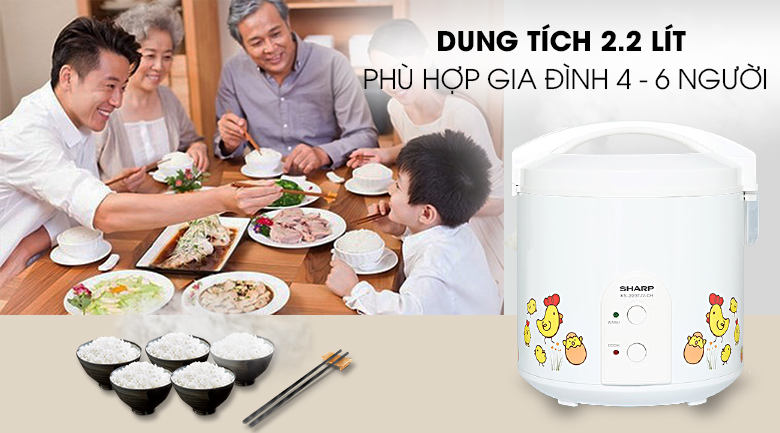 Nồi cơm nắp gài Sharp KS-223TJV-CH 2.2 lít đẹp, dễ dùng, thương hiệu tốt, nấu cơm nhanh, lựa chọn tốt cho gia đình đông người.