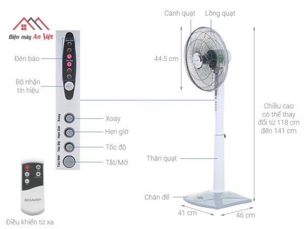 Quạt cây điều khiển từ xa 50W Sharp PJ-S40RV-DG