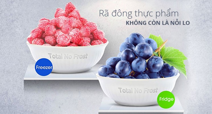 Công nghệ Total No Frost thổi hơi lạnh đều khắp ngăn đông và ngăn mát, giúp ngăn ngừa bằng hình thành. Nhờ đó, bạn hoàn toàn không cần lo lắng phải xả đông thủ công nữa.