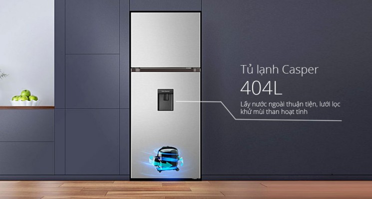 Tủ lạnh Casper 404L – Lấy nước ngoài thuận tiện, lưới lọc khử mùi than hoạt tính