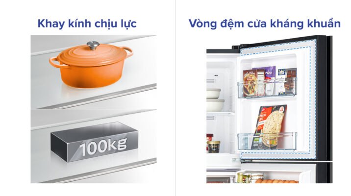 - Khay kính thủy tinh chịu lực, bề mặt chống trầy xước, chịu nhiệt và dễ dàng lau chùi, có thể chịu được sức nặng lên tới 100kg.