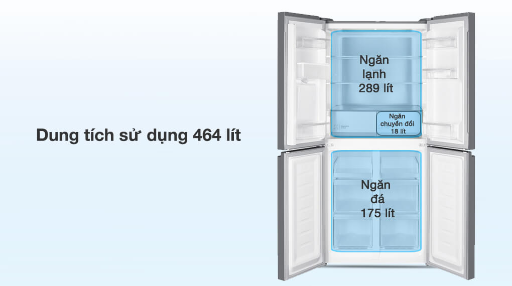 - Dung tích 289 lít giúp bạn lưu trữ nhiều loại thực phẩm.
