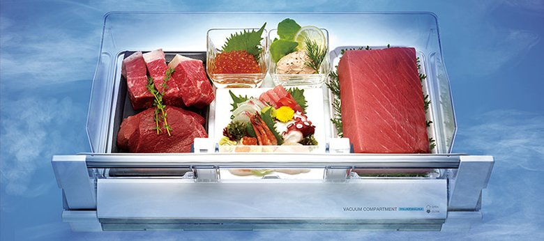 Giờ đây bạn có thể thoải mái lưu trữ thực phẩm lâu hơn mà không cần làm đông đá chúng. Hơn thế nữa, bạn còn có thể lựa chọn chế độ cài đặt với nhiệt độ lý tưởng phù hợp với từng loại thực phẩm lưu trữ giúp giảm hiệu quả sự biến đổi của cấu trúc và mùi vị thực phẩm. Không chỉ giữ thực phẩm tươi lâu hơn, trọn vẹn dưỡng chất, Ngăn chân không cho phép gia vị được thẩm thấu với tốc độ nhanh hơn, tiết kiệm nhiều thời gian cho việc tẩm ướp và chế biến.