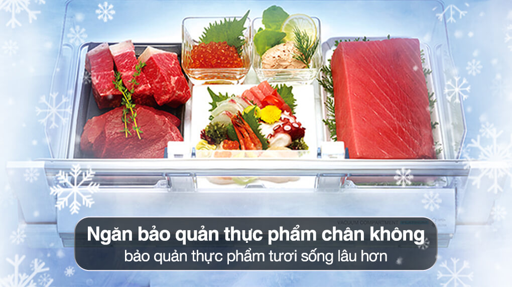 - Ngăn bảo quản thực phẩm chân không: Duy trì áp suất 0.8 atm, giúp thực phẩm tươi sống giữ được hương vị và chất dinh dưỡng, hạn chế hư hỏng và mùi hôi.
