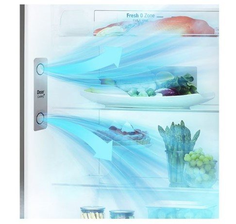Thực phẩm giữ được sự tươi ngon và đồ uống được giữ lạnh từ tất cả các ngăn với hiệu suất làm mát đều và nhanh hơn nhờ công nghệ Door Cooling+™. Với các dòng tủ lạnh thông thường, hơi lạnh chỉ được thổi từ phần lưng tủ ra ngoài dẫn đến tình trạng thực phẩm bên trong bị quá lạnh, đóng đá trong khi bên ngoài lại không đủ độ lạnh, nhanh hỏng.