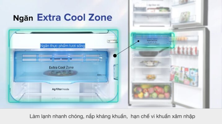 Ướp lạnh đồ uống nhanh chóng và an toàn cùng ngăn Extra Cool Zone có nắp kháng khuẩn